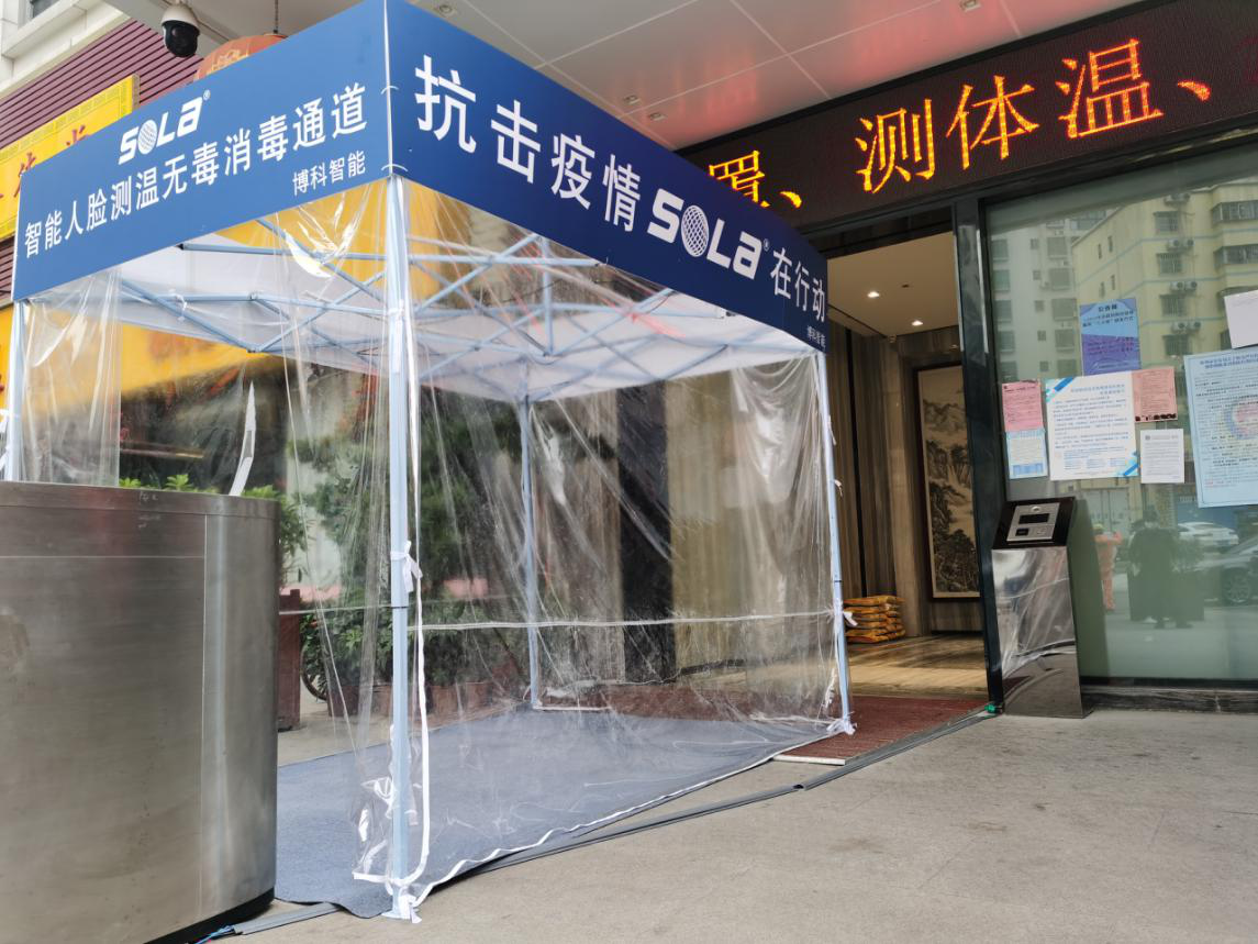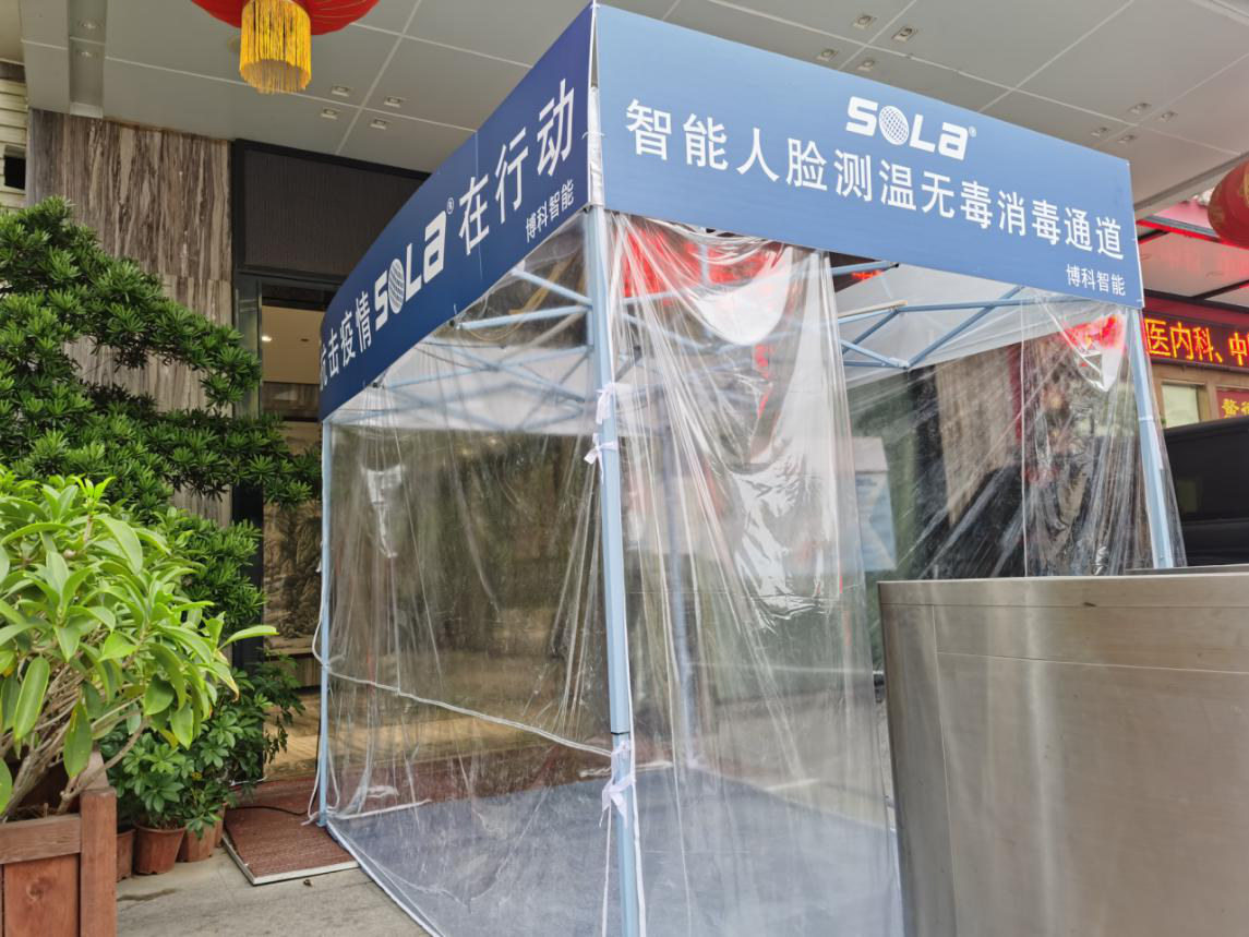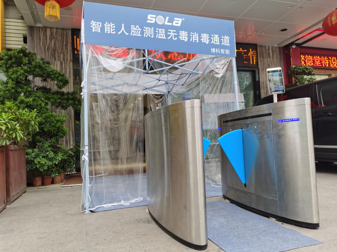 智能人脸测温无毒消毒通道在疫情期间特别实用,适用于花园小区、办公楼、酒店、市场、施工工地、商场、超市、工厂门口。科学防疫,为我们的健康保驾护航!